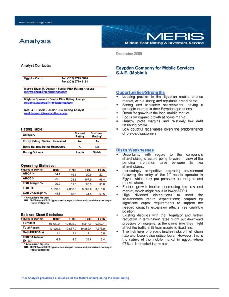 The Egyptian Company for Mobile Services (MobiNil) – 2nd Bond