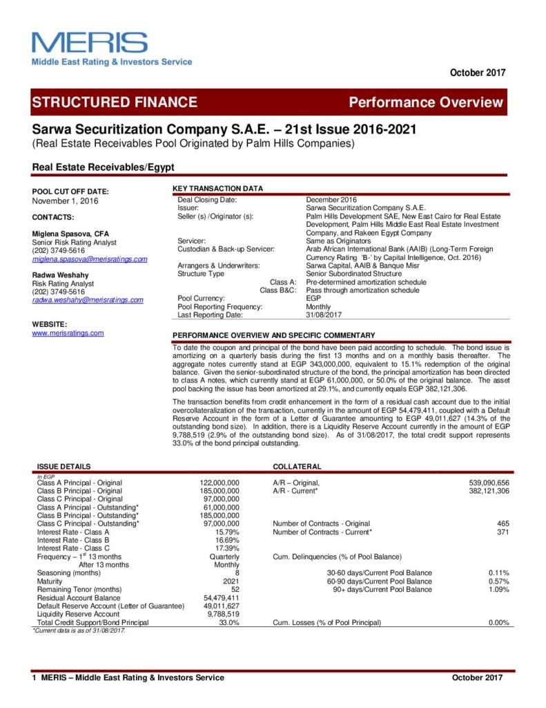 Sarwa Securitization Company – 21st Issue