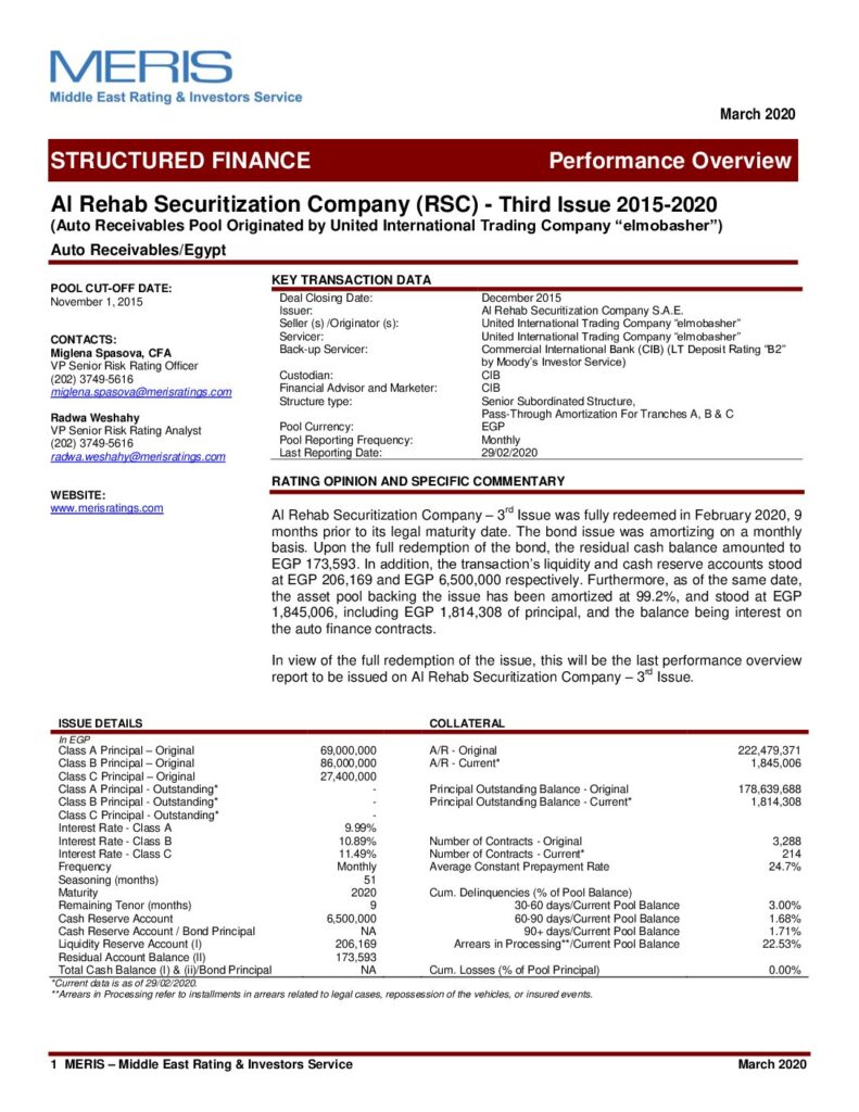 Al Rehab Securitization Company – 3rd Issue