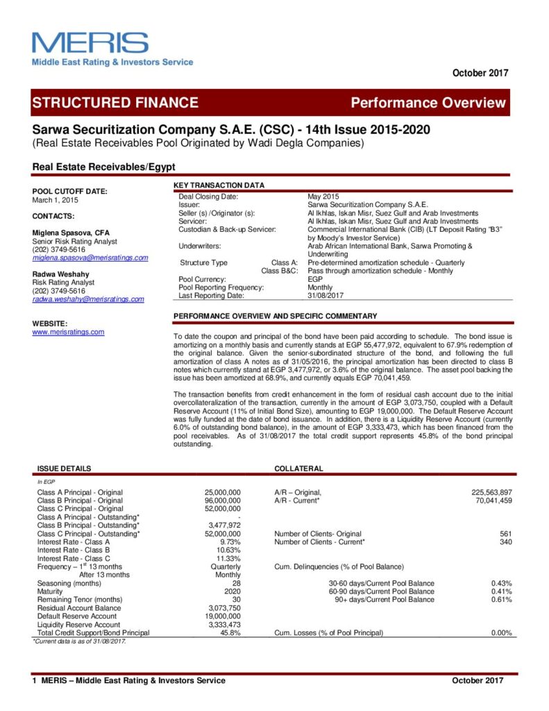 Sarwa Securitization Company – 14th Issue