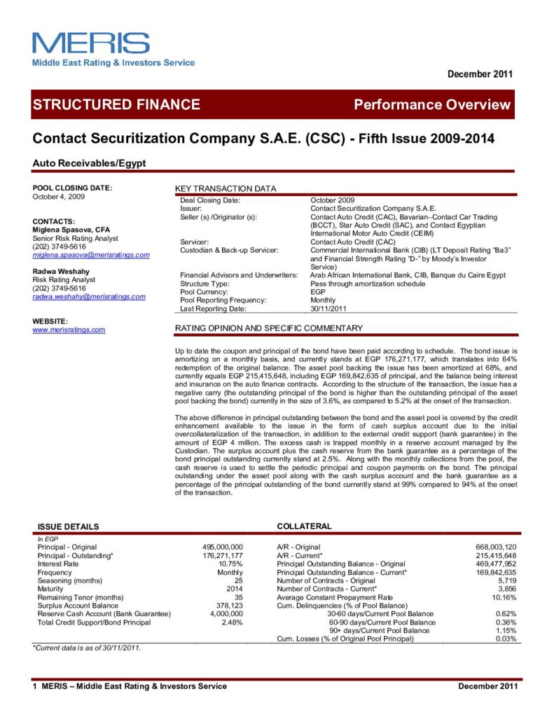 Contact Securitization Company – 8th Issue