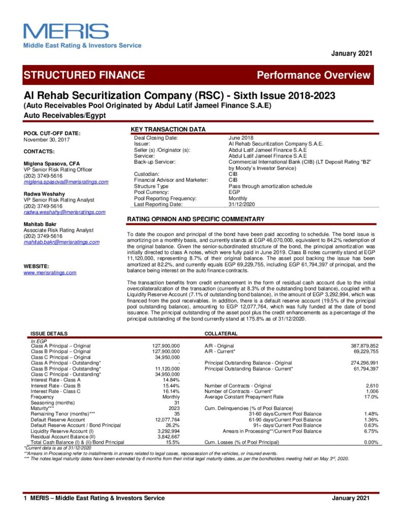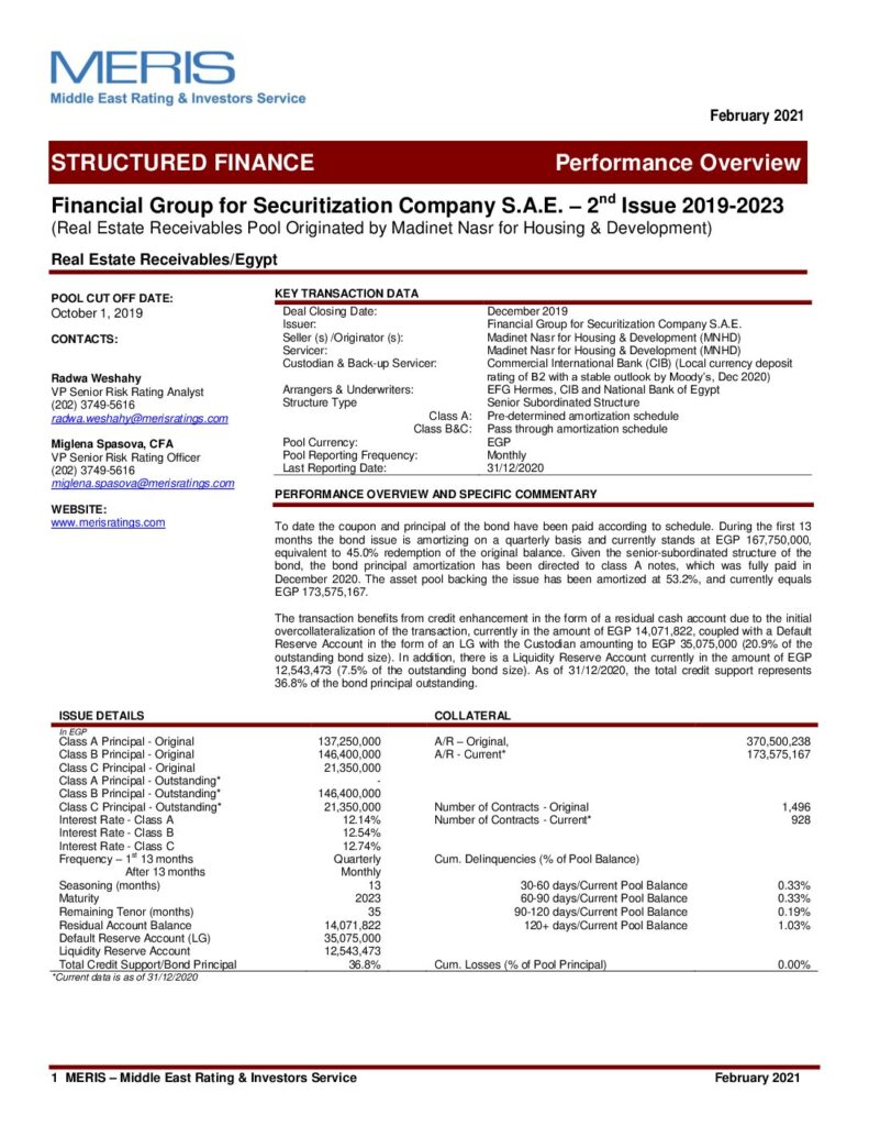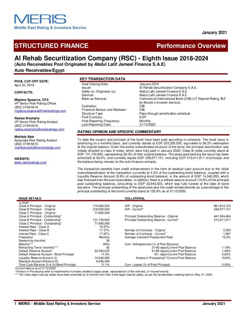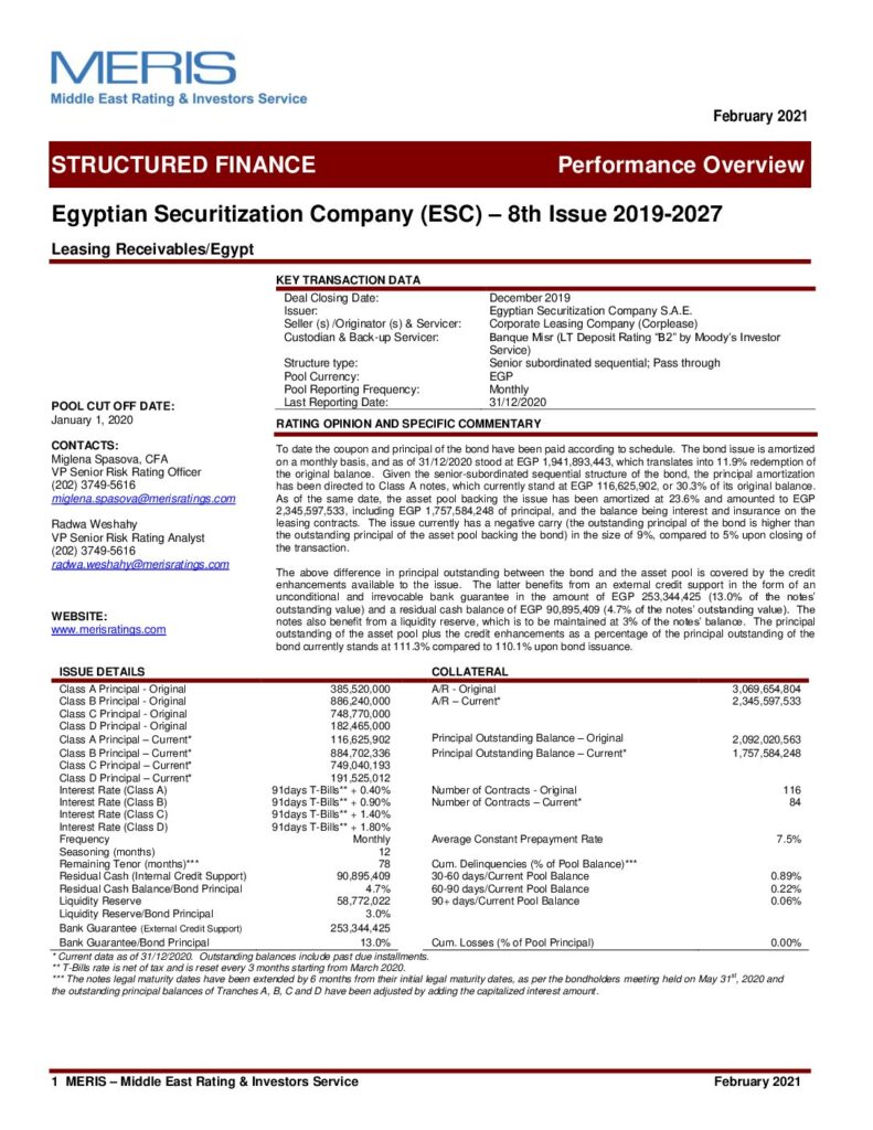 The Egyptian Securitization Company – 8th Issue Class A “AA+”(sf) Class B “AA”(sf) Class C “AA-“(sf) Class D “A”(sf)